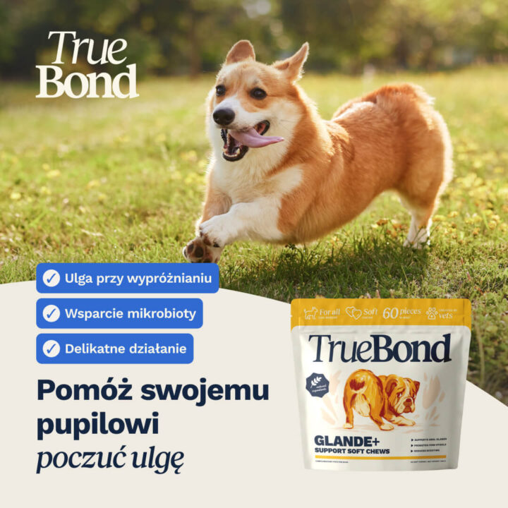 - Ułatwia naturalne opróżnianie gruczołów okołoodbytowych